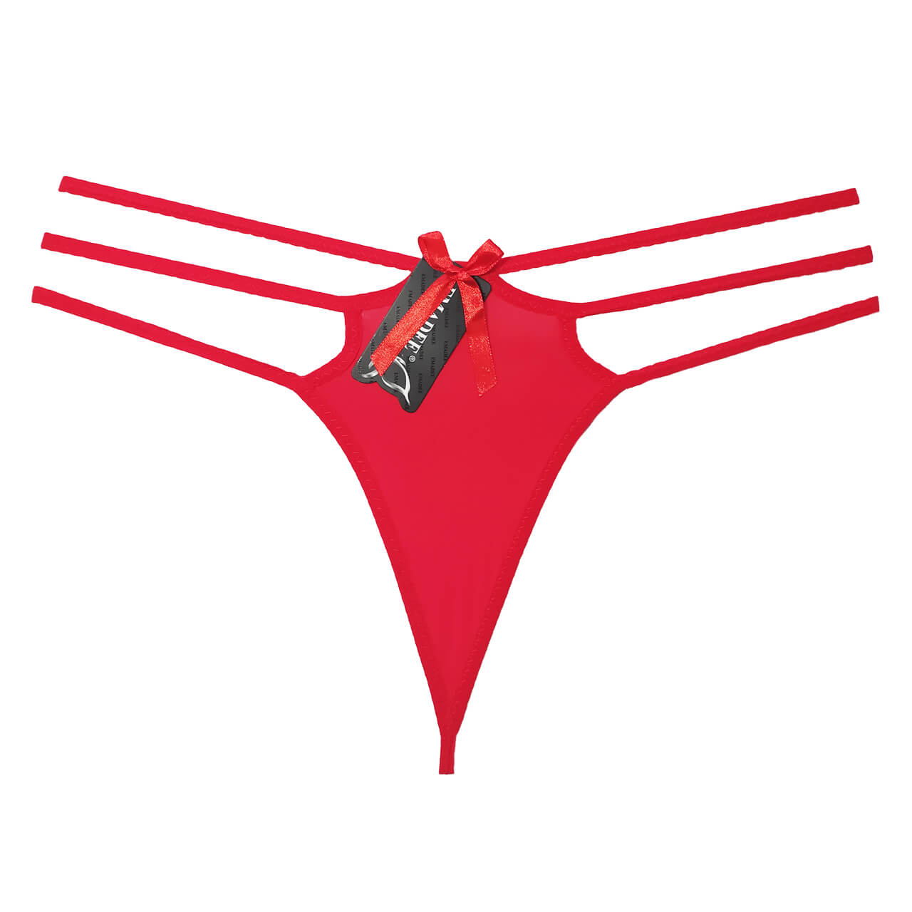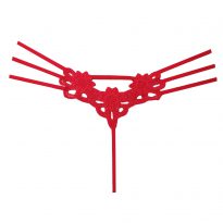 دور کمر این محصول دارای سه بند می باشد. پوشش قسمت جلویی تنها یک پارچه مثلثی است که با یک پاپیون کوچک تزیین شده است. در قسمت پشت با وجود یک بند و طرح سه گل، یک نمای چشم نواز را به نمایش می گذارد.